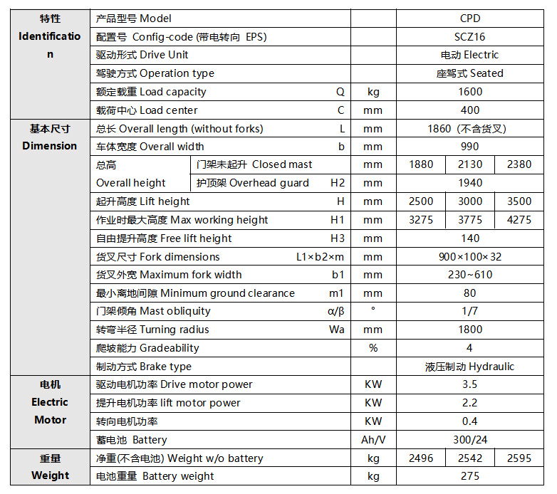 CPDSCZ電動叉車1.6T電轉(zhuǎn)向