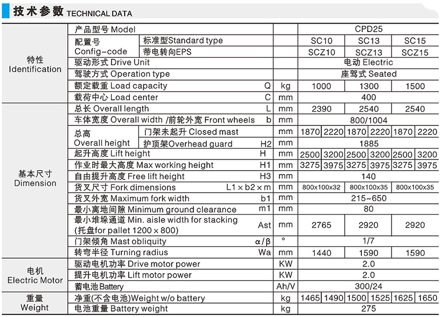 CPDSC 標(biāo)準(zhǔn)型電動(dòng)叉車(三支點(diǎn),標(biāo)準(zhǔn)型)